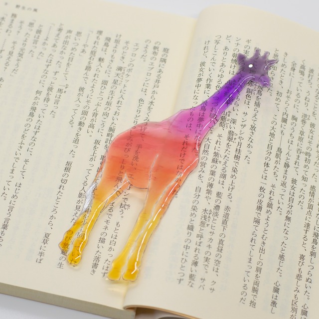 シルバーラインで縁取られた、ステンドグラスのような透明感のあるキリンをデザイン。 サバンナの夕暮れをイメージしたグラデーションに雲を描いています。 また夕闇部分に一番星を模したストーンを一石埋め込んでいます。 ※オプション選択でストーンなしもお選びいただけます。 ✼••┈┈••✼••┈┈••✼ 【SNS投稿 先約クーポン常時使用可能】 ご購入頂いた商品の到着後にお客様のSNSで紹介頂けると約束してくれる方、今回のお会計から100円引きさせていただきます! moonbaseのアカウント名と到着した商品の写真を載せてTwitterやInstagramで紹介してください。 ご参加いただける方はお会計時に下記クーポンコードを入力してください。 クーポンコード Twitterの方:senyaku Instagramの方:inst_senyaku ✼••┈┈••✼••┈┈••✼ 薄くても強く、よくしなる素材でお作りしています。 本に挟んでいてもフィットするので読書の邪魔をしません。 すべて手作業で描いていますので、表面の凹凸や色合い厚さなどひとつひとつ表情が異なります。 ハンドメイドということをご理解いただいてご購入ください。 枠なしのグラデーションを描いているため制作に時間がかかるので、他の色より価格を上げさせていただいております。 栞は受注後製作しております、お時間に余裕を持ってご注文ください。 店主一人で製作しているためご到着までお時間をいただいており申し訳ございません。 お待たせしてしまう分、満足いただける栞をお届けできるよう努めますので、楽しみにお待ちいただけました幸いです。 発送時期や商品についてご要望やご質問がございましたら、注文画面備考欄やSNSのDM、[[email protected]]にご連絡ください。 販売の告知や新商品のご案内などはSNSで行っておりますので、ぜひフォローをお願いいたします。 Twitter : @FromTheMoonbase Instagram : @from_the_moonbase 欠品中の商品のご購入をご希望の方は、再入荷通知のご登録をお願いいたします。 素敵な読書時間を。 サイズ : 約12.5cm×約6cm 文庫本に納まる大きさです。 素材 : 合成樹脂 熱に弱く形が変形することがありますので、車内など高温の場所への放置にご注意ください。 逆に寒い場所に長時間放置しますと樹脂が硬くなり、折れやすくなりますのでご注意ください。 直射日光により変色する可能性がございます、本などに挟んで保管していただくと長くお楽しみいただけます。 ーーーーーーーーーーーーーーーーーーーー ・送料は無料です。普通郵便にて発送しております。 ・小さなお子様のお手の届かないよう、お取り扱いには十分にご注意ください。 ・制作の過程でごく小さな気泡が入ることがあります、ご理解いただいた上でご購入ください。 ・稀に栞の端がわずかに反ることがございます。 本に挟むと平らになり使用には問題がありませんが、気にされる方は購入をお控えください。 (GUIDEページに参考写真がございます) ・商品の写真は本来の色に近づけ掲載しておりますが、お客様の端末環境により色合いが異なる場合がございます、ご了承ください。 ・商品に初期不良がある場合を除き、基本的に返品はご遠慮いただいております。 到着後すぐに破損などがないかご確認をお願いいたします。