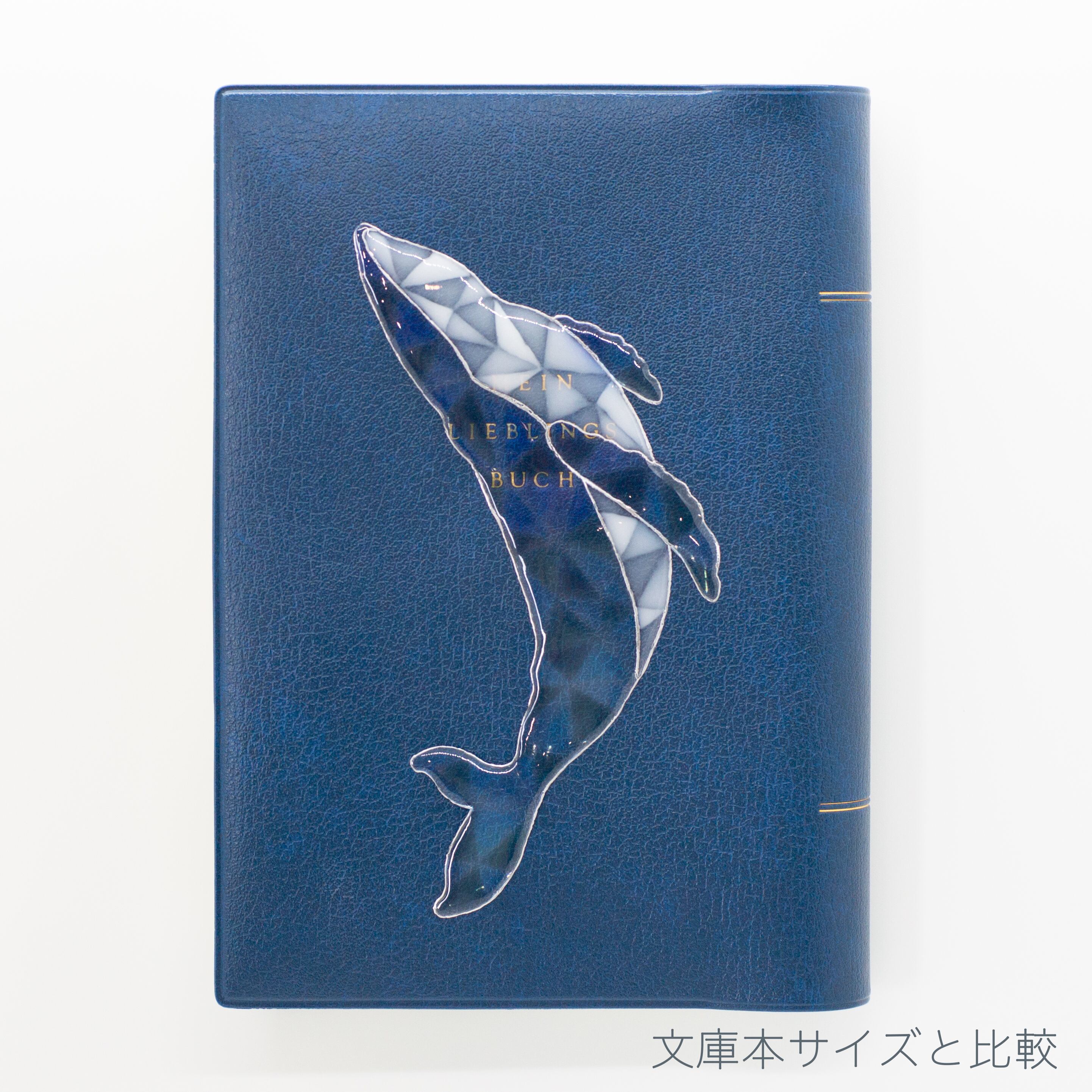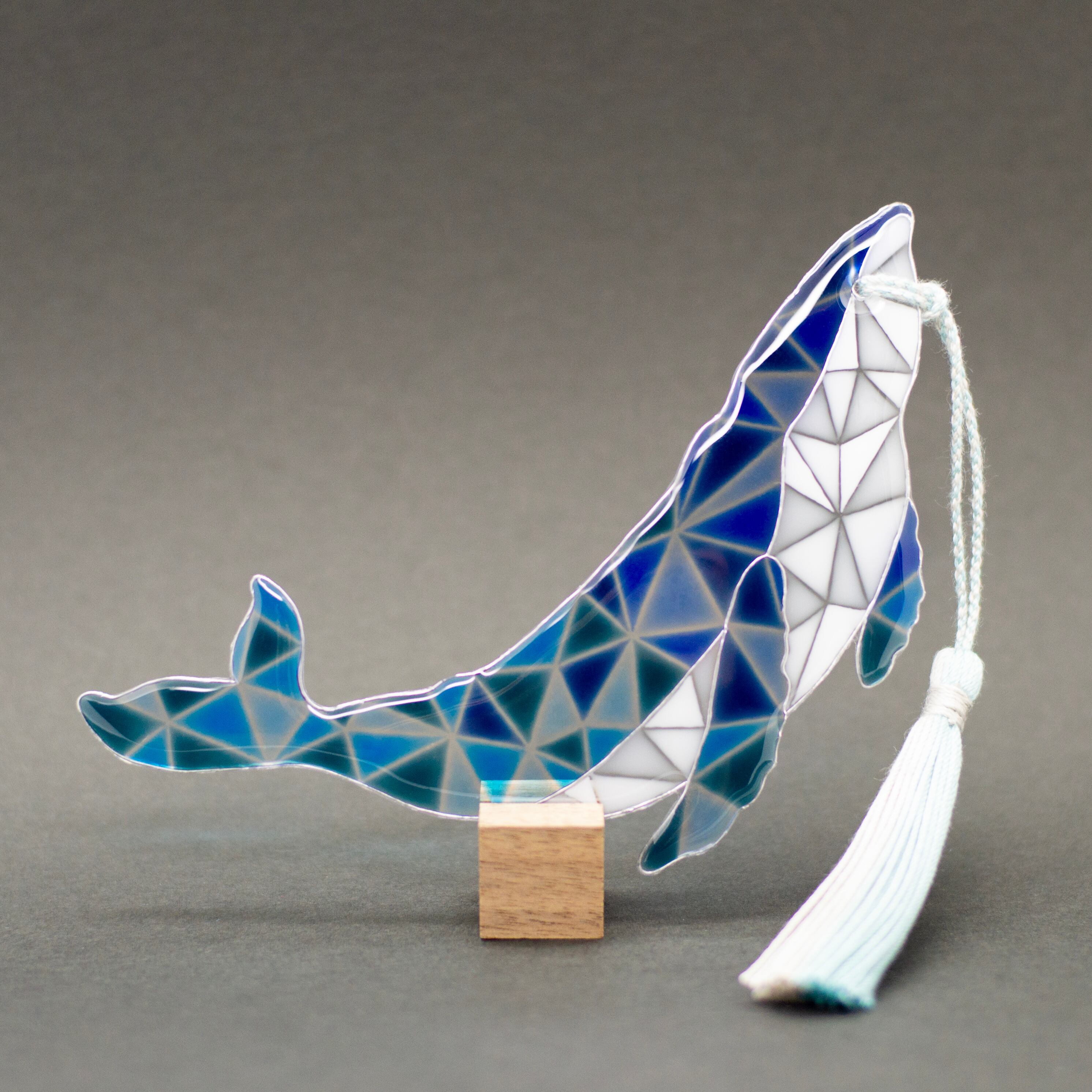 シルバーラインで縁取られた、ステンドグラスのような透明感のあるクジラをデザイン。