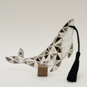 シルバーラインで縁取られた、ステンドグラスのような透明感のあるクジラをデザイン。