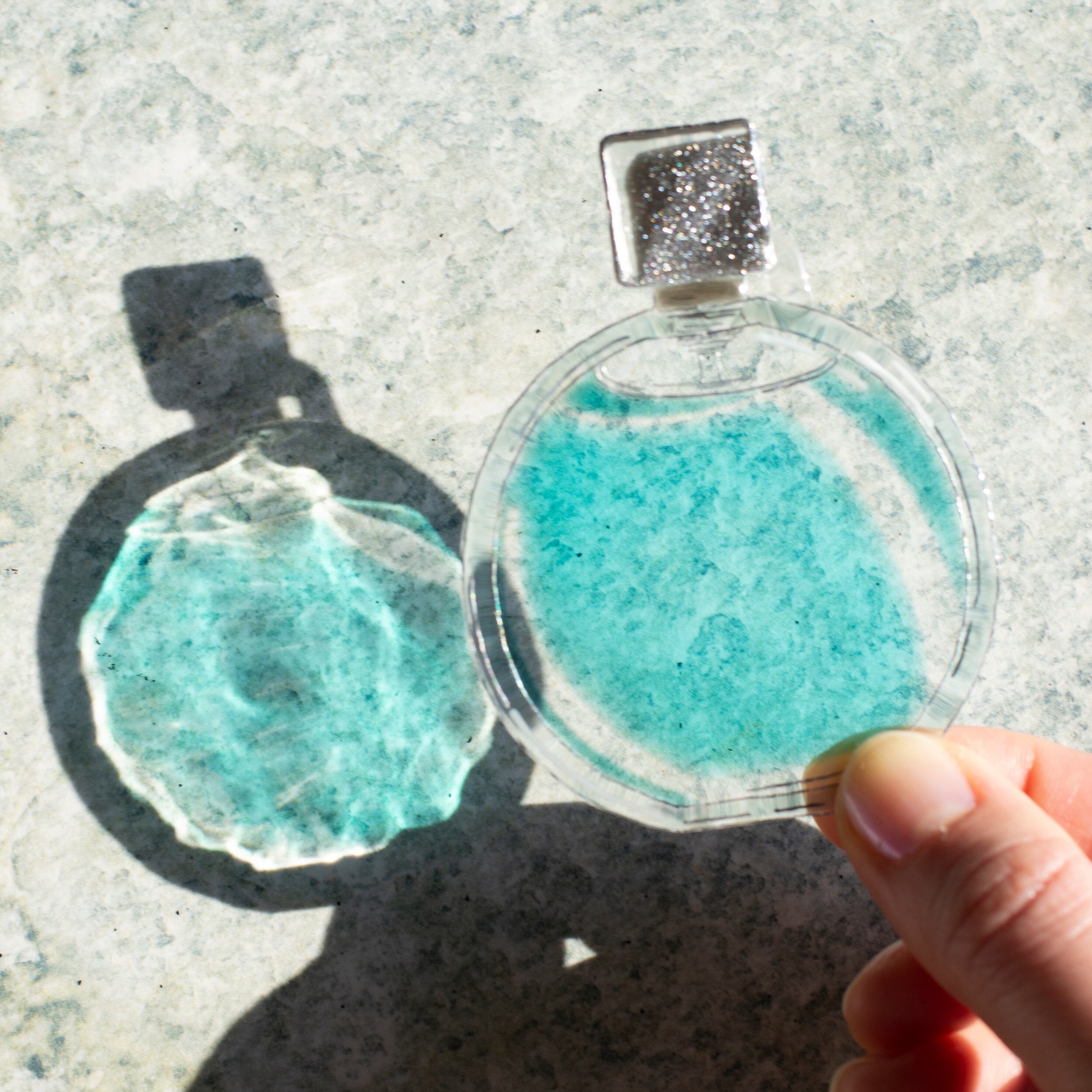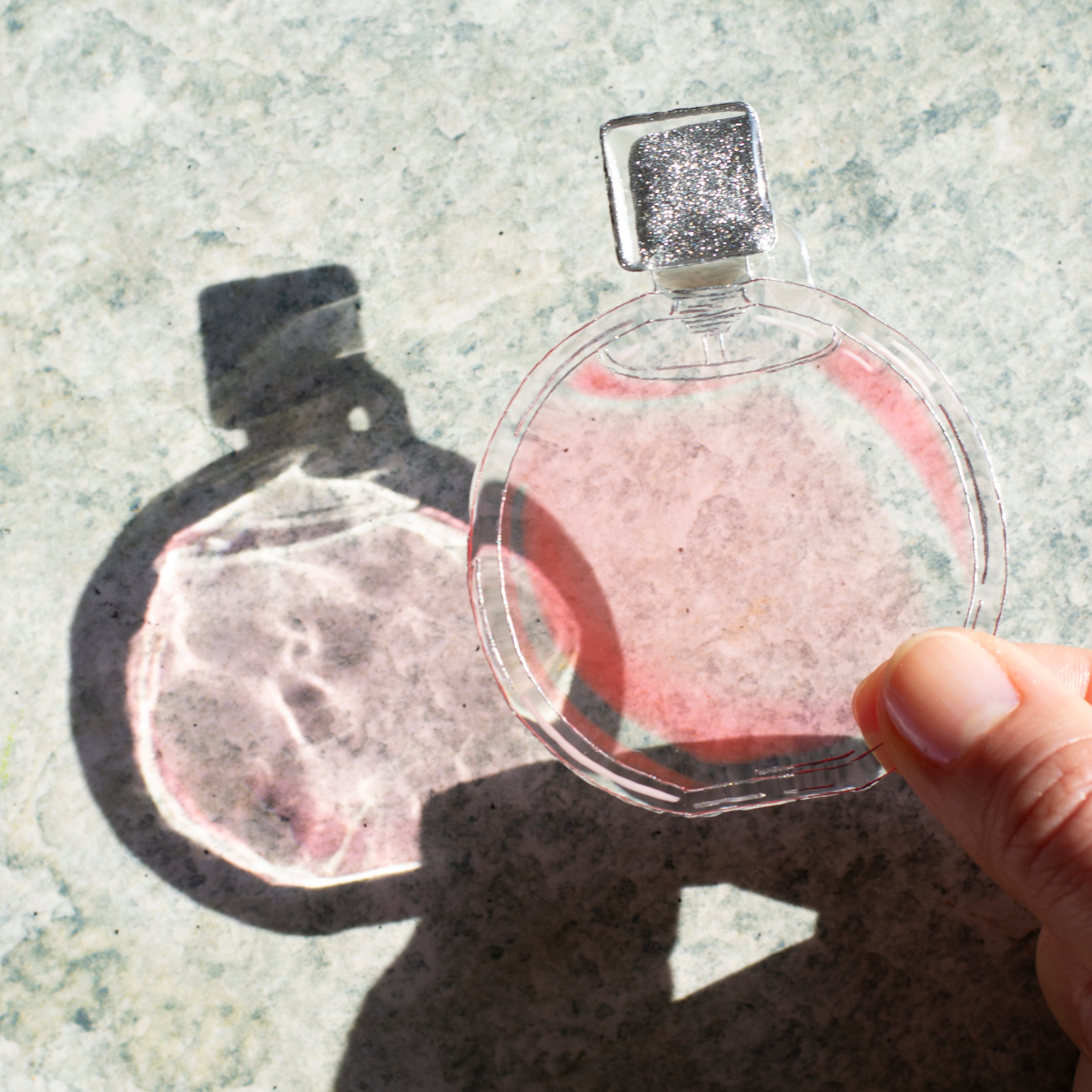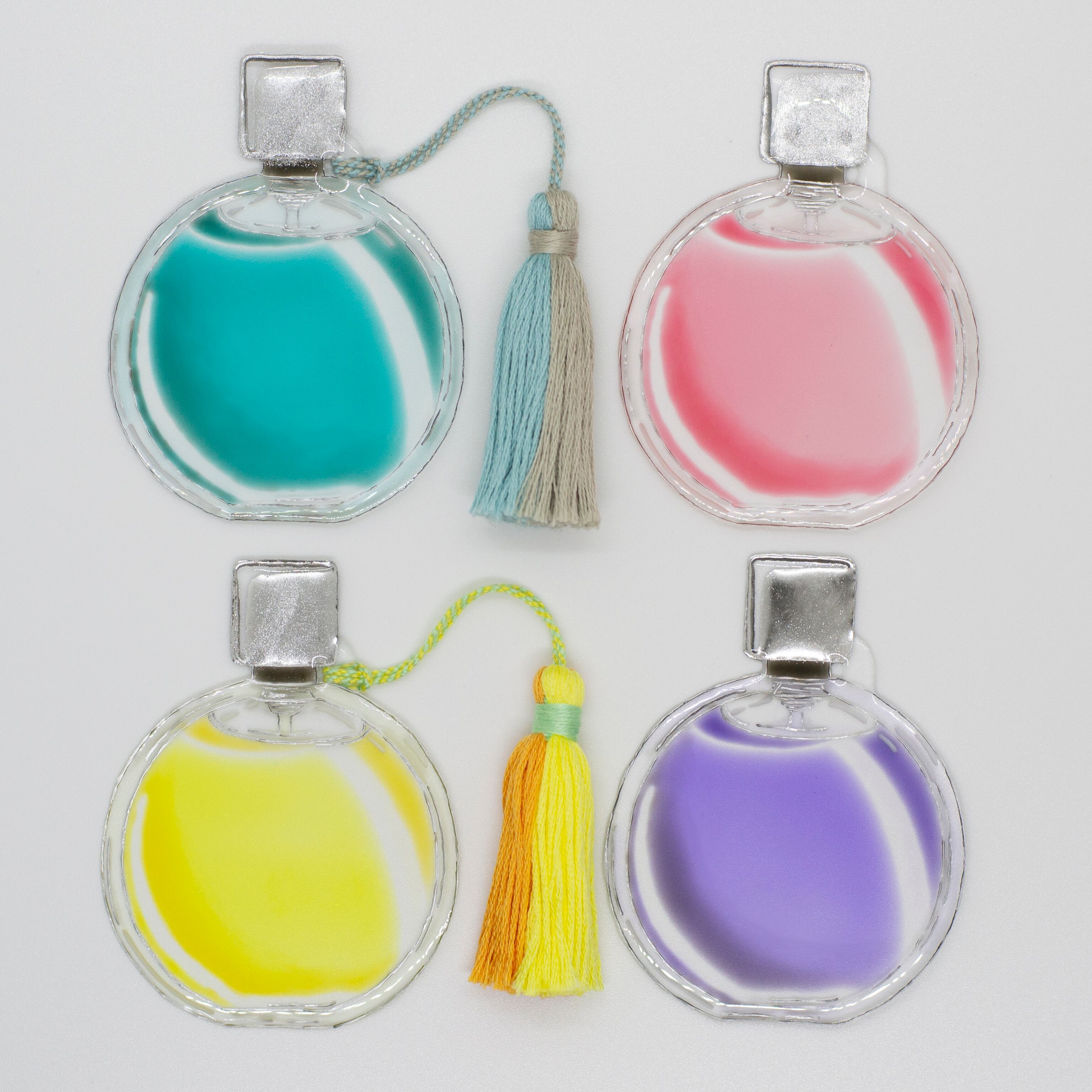 ころっとした丸いフォルムが可愛らしい香水瓶をデザイン。