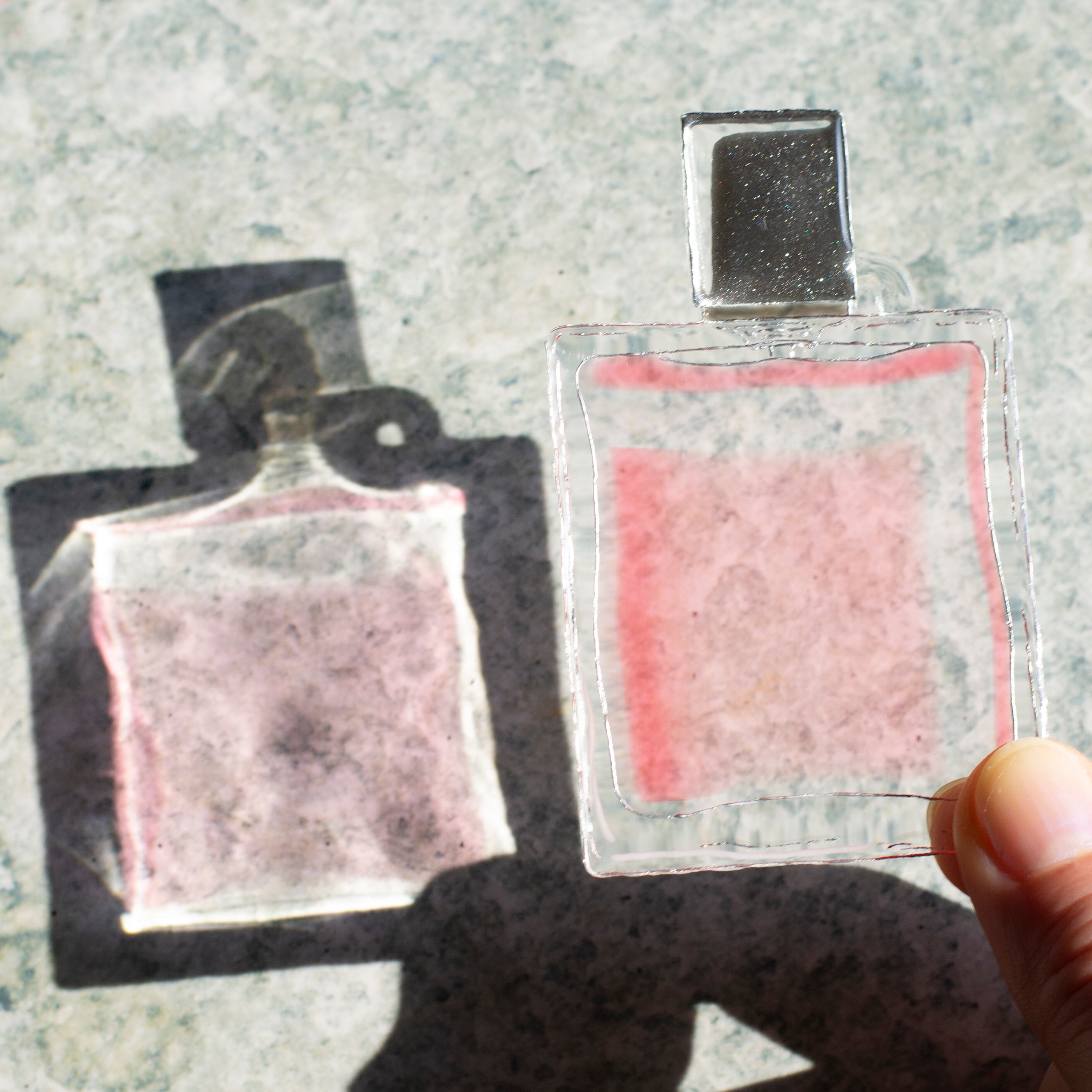 すっきりとした四角いフォルムが美しい香水瓶をデザイン。